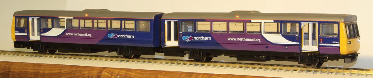 Introduction: This webpage provides a summary of the process adopted to incorporate DCC decoders and correctly operating external LED lighting in a Northern Rail variant of the Hornby 2-car Class 142 unit (OO gauge). Note that the smaller pictures can be enlarged by clicking on the image. |