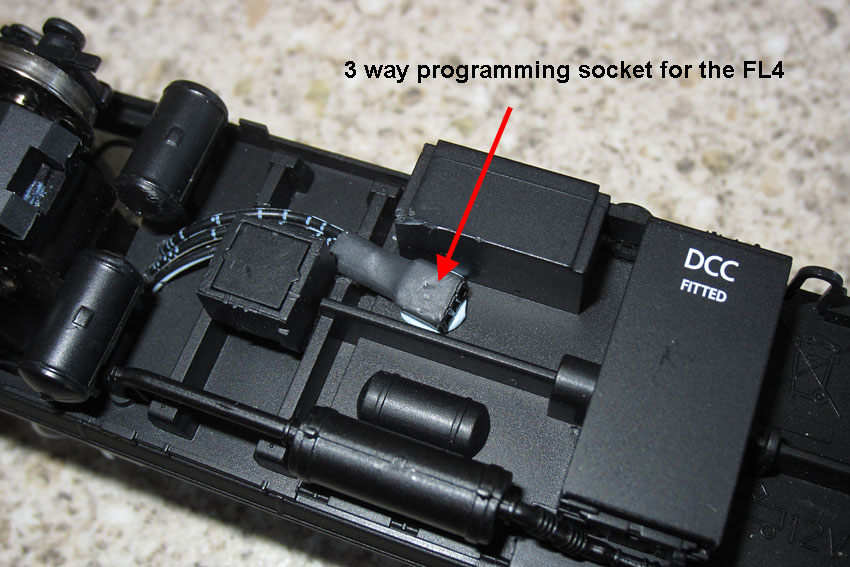 Link plug inserted to activate the FL4 decoder after programming (Held in place with Blu Tac)