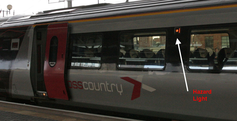 Cross Country Voyager, showing the bright right hand daylight headlight and much dimmer upper and left hand marker lights