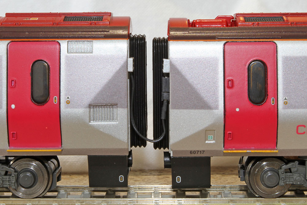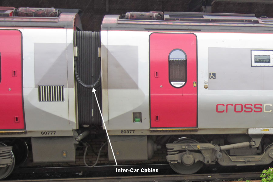 The inter-car cables in place (the mechanical coupling bar is not fitted at this stage) |