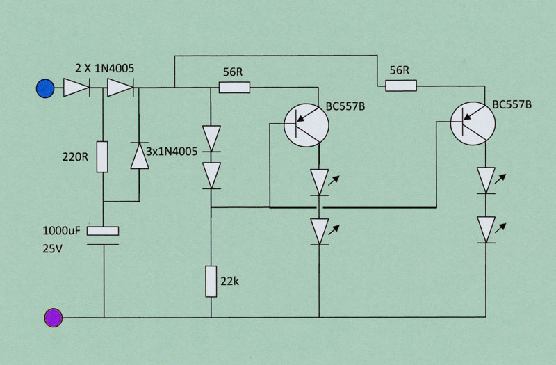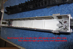 Lighting : Each coach roof will be painted matt white on the inside. Discrete chip LEDs will be fitted to "bounce" white light off the roof in an attempt to obtain a fairly even lighting effect. The LEDs will be connected in pairs to a constant current source, fitted with large anti-flicker capacitors, to keep the lights on in the event of brief gaps in the train power pick-up.