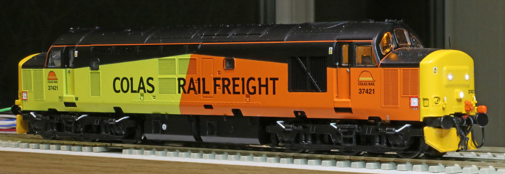 Bachmann's Class 37/4 in Colas livery receives a Zimo based sound system and DCC controlled lighting. |