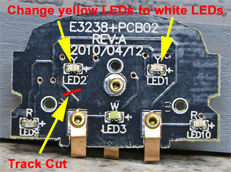Lighting PCB assembly circuit The new white LEDs are brighter than the original yellow devices, so an additional resistor is required in series with the marker LEDs. |