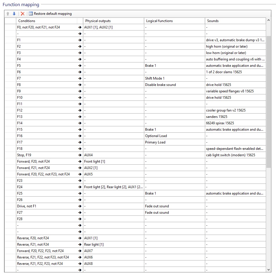 The Freightliner hardware connections are slightly different to those of the earlier GBRF loco. The lights consequentially operate much better with the above mapping adjustments. :-)
