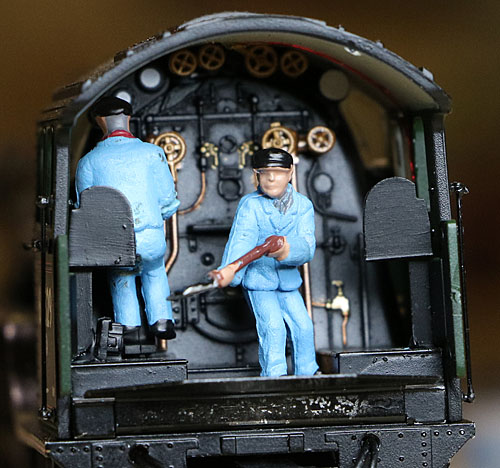 Cab refitted and wires to tender routed through narrow gap in cab floor structure.