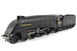 Hornby Class A4 in LNER wartime black livery To haul diverted troop trains on our village layout A Locoman ESU sound system fitted. Stay alive supercap with protection system on board. Footplate crew assigned.